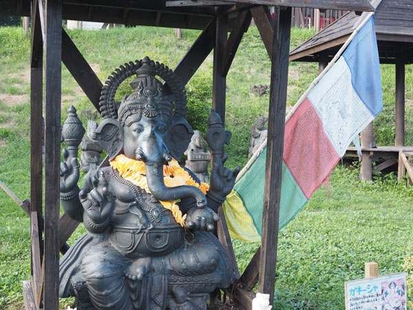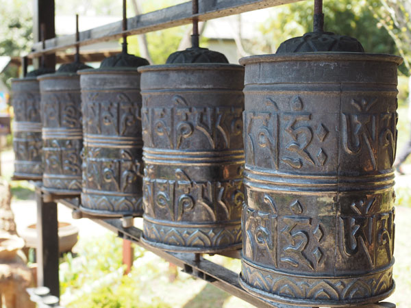 右手側にはネパールの【マニ車】があります。回した数だけお経を唱えた事になる法具です。